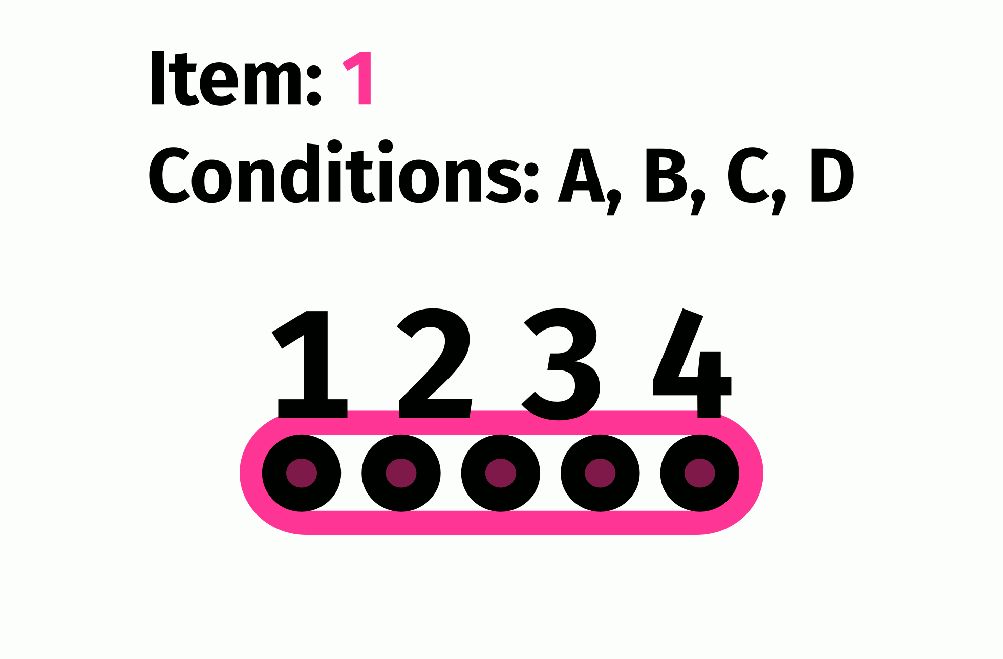 Figure out what columns you need (at least: item, condition, sentence, question/rating, list)