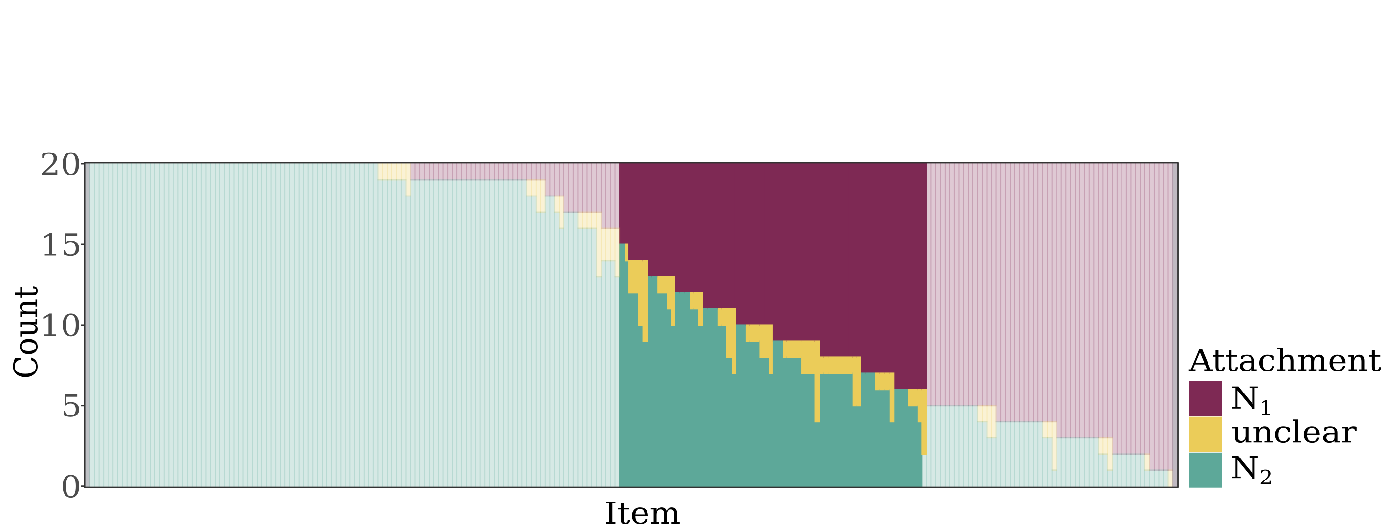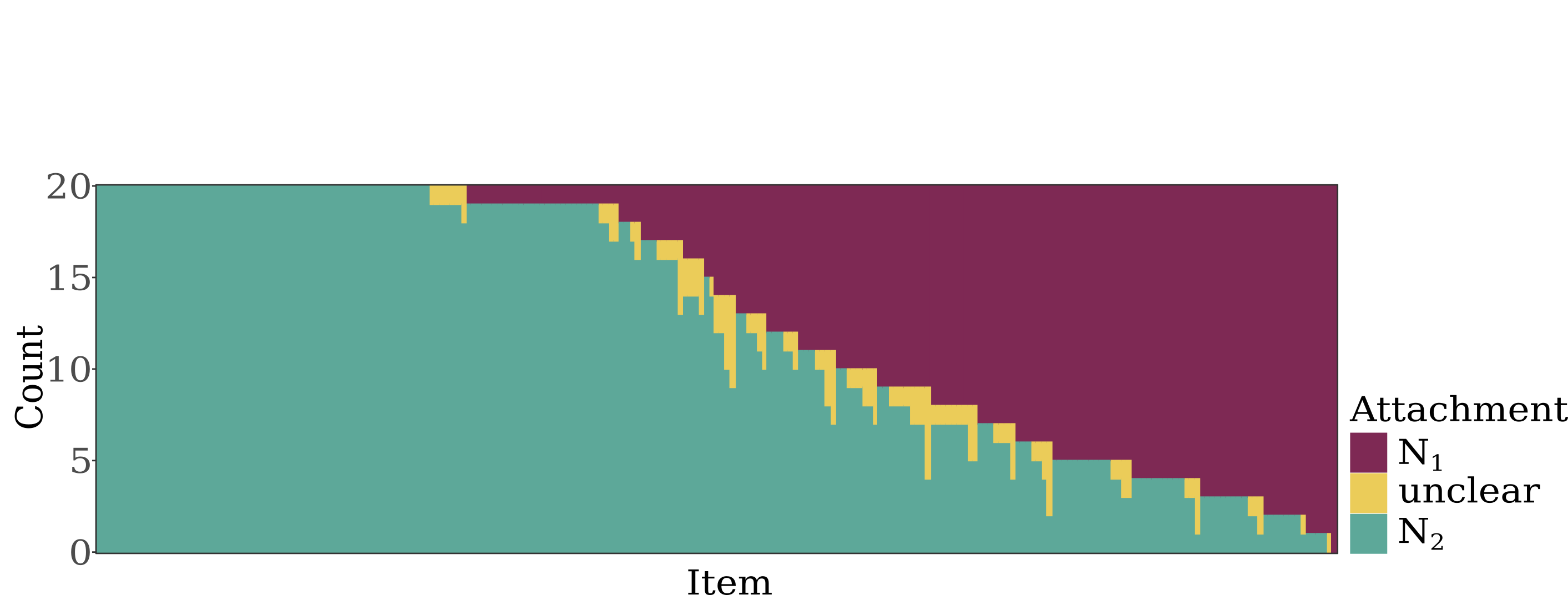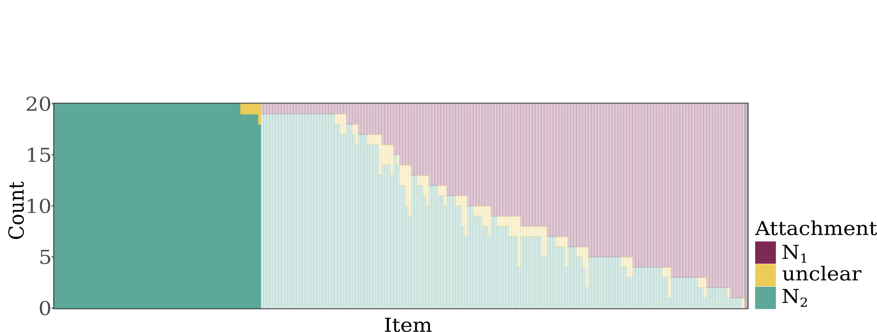 N2 was chosen more often than N1 overall → grammatical ✔️