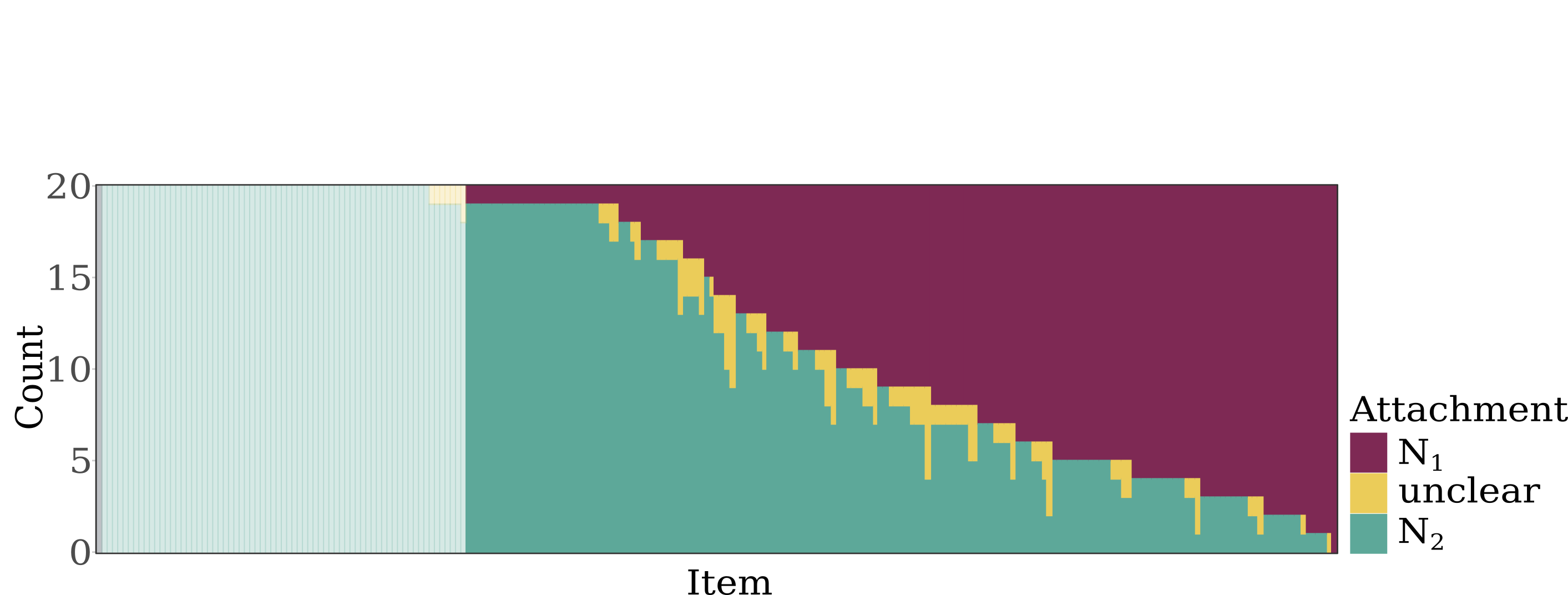 High adjective 🩷 N2 semantic match reduced N1 attachments.