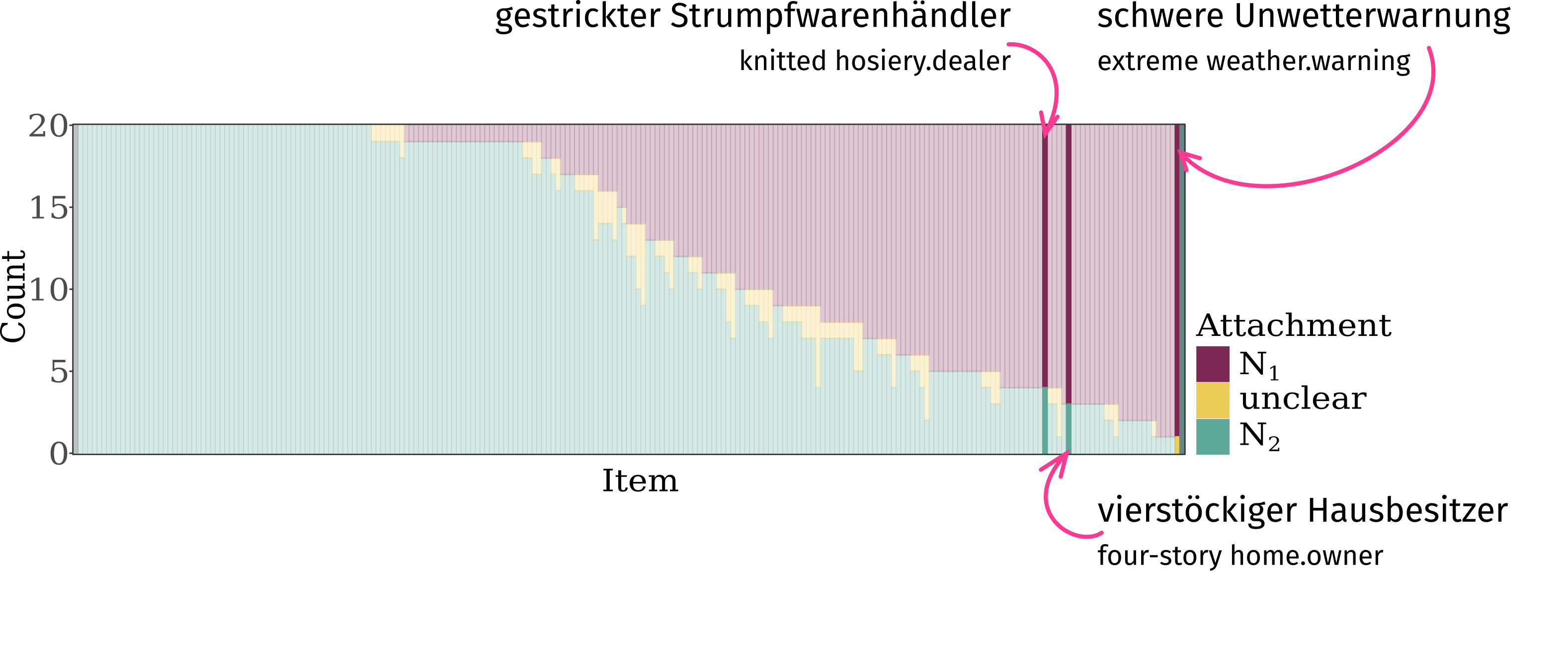 In the absence of a suitable (N2) head noun candidate, the first noun (N1) becomes an attractive target for the adjective.